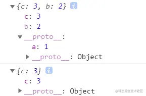 // Object.create() 创建一个对象,第一个参数为这个对象指定原型,第二个参数是一个对象 用于配置对象属性 let obj = Object.create({a: 1}, { b: { value: 2 }, c: { value: 3, enumerable: true } }) console.log(obj); // -> {c: 3, b: 2} let copy = Object.assign({}, obj); console.log(copy); // -> {c: 3} -