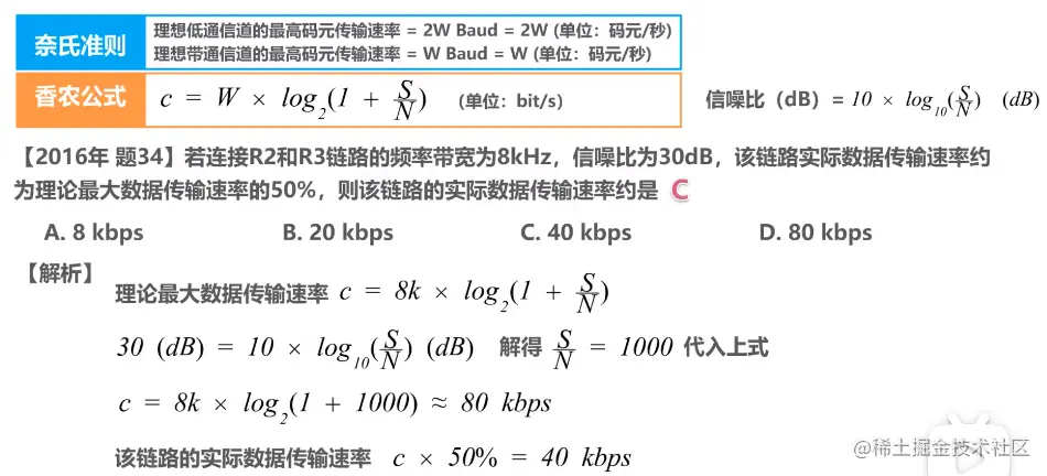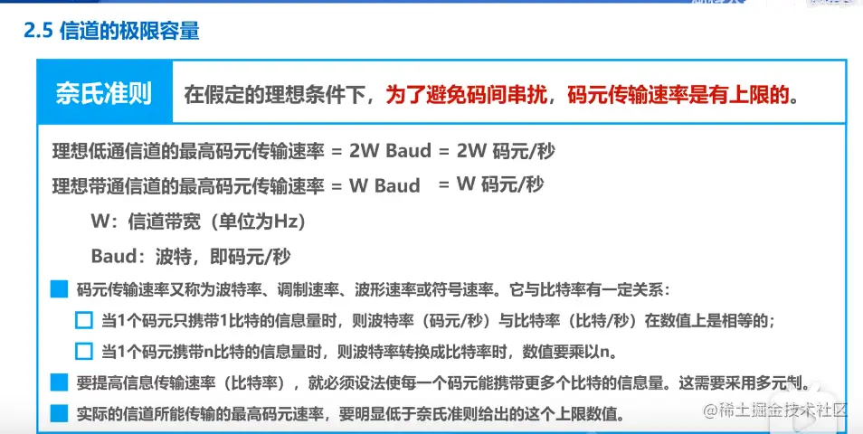 信道数据传播速率与信噪比,频率带宽,调制速度(码元传输速度),码元所携带的比特数有关。 与信道传播速度无关。