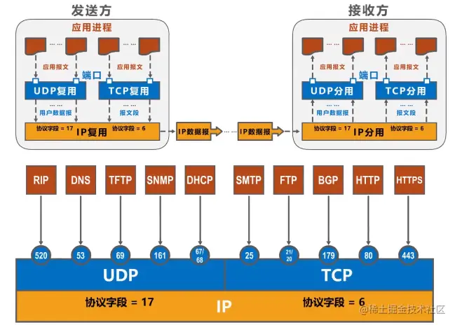 实际上两个计算机网络中进行通信的真正实体是位于通信两端主机中的进程。运输层的任务便是为运行在不同主机上的应用提供直接的通信服务。运输层向高层用户屏蔽了下面网络核心的细节,为使应用进程看见的就好像是在两个运输层实体之间有一条端到端逻辑通信信道。根据应用的需求不同,因特网的运输层为应用层提供了两种不同的运输协议,即面向连接的TCP和无连接的UDP。