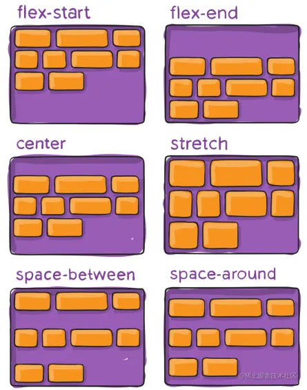 主轴对齐方式(默认主轴是横轴,除非你改变了flex-direction方向)