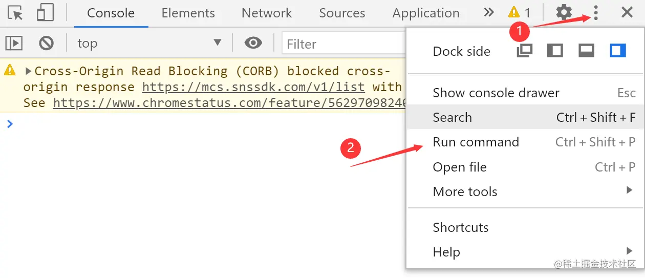 打开控制台,点击右上角扩展图标,选择Run command打开命令行。