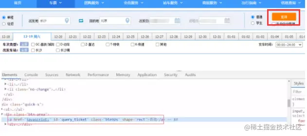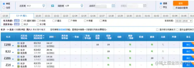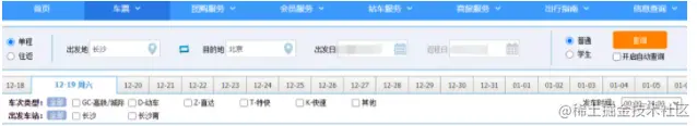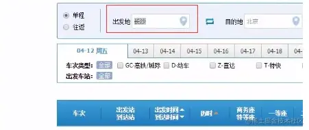 下面我们用12306这个网站来演示一下 假如我们要去买票,肯定是要填写好出发地 目的地和出发日期