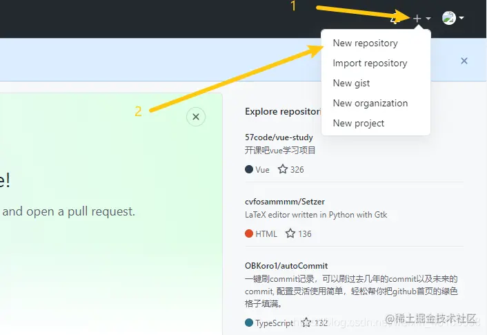 现在我们已经创建好了这个 Git 本地仓库,有了这个本地仓库,我们还需要在代码托管平台创建一个仓库,这里以 GitHub 为例,我们创建一个仓库,账号注册这里就不做赘述了,