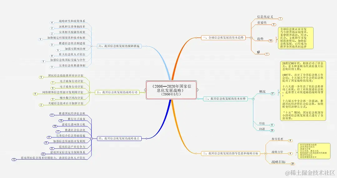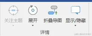使用MindManager的导图折叠功能,我们可以一键收起所有分支,在进行展示时我们也可以选择打开部分分支,这里我们需要用到视图选项卡的详情功能区。