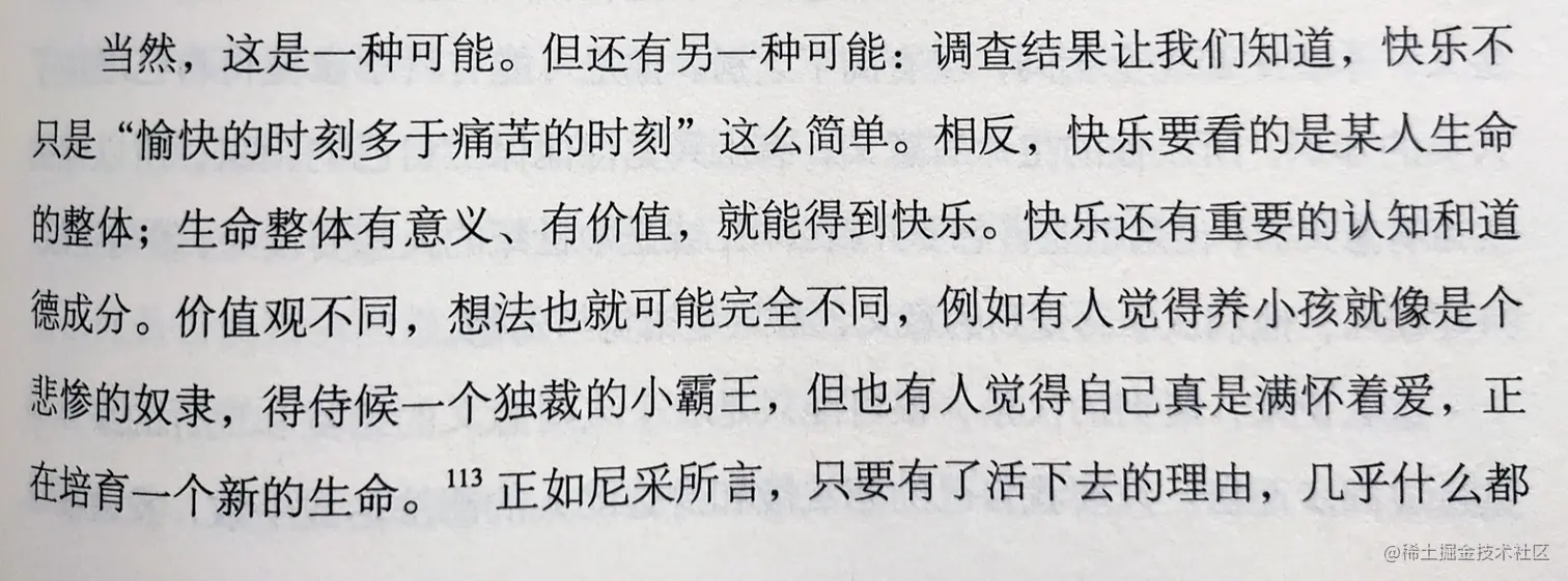 - 快乐能来源于做对生活有意义的事情,但不仅限于此。要不打游戏,咸鱼的快乐又如何去解释?虽然这些事情快乐后会来带空虚感。可能这种事后会空虚的快乐不算是真正的快乐吧。会造成空虚我想是,虽然这些事情对于生活也是有意义的(比如放松,休息啥的),但是它的带来的意义的性价比不高。我们还有很多钟选择能以更少的成本显示相同的效果。又或者我们能去提高做这件事的意义,比如和伙伴开黑,玩荒野大镖客去感受西部风情,思考理解游戏理念等。