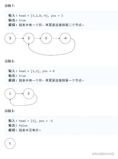 通过使用具有 不同速度 的快、慢两个指针遍历链表,空间复杂度可以被降低至。慢指针每次移动一步,而快指针每次移动两步。