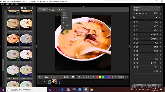 3、下拉找到Fuji Sensia-Low Light,选择它就好啦。人像、动物、风景类的图片都可以在exposure上找到适合的滤镜。它的滤镜之多可以达到500多种!