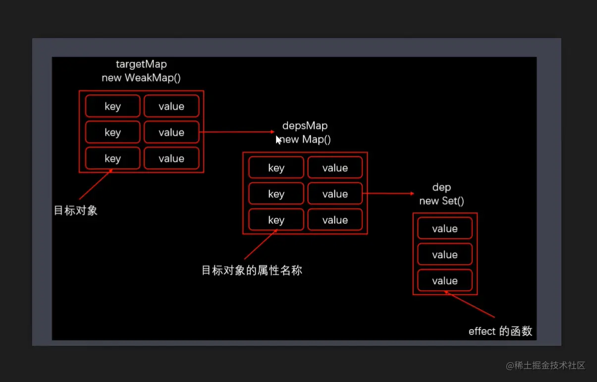 - 定义一个ref 对象,ref.value 用于存放getter 函数的返回值