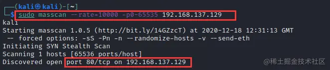 使用 masscan 扫描得到开放的 80 端口