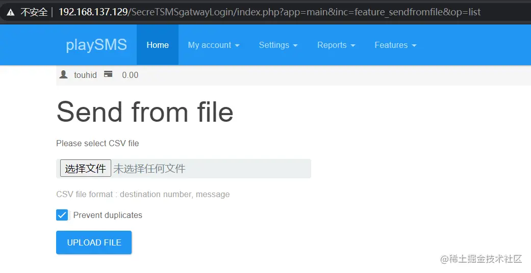 发现后台使用playsms系统,扫描漏洞