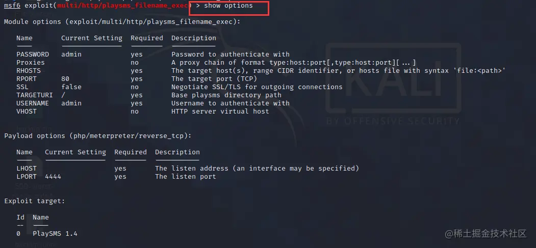 use exploit/multi/http/playsms_filename_exec使用漏洞文件上传位于该页面