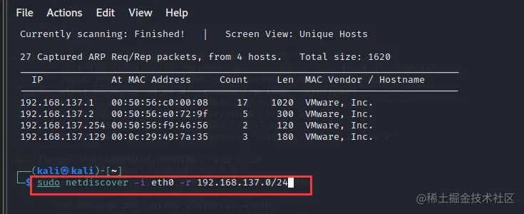 查看kali攻击机所在网段