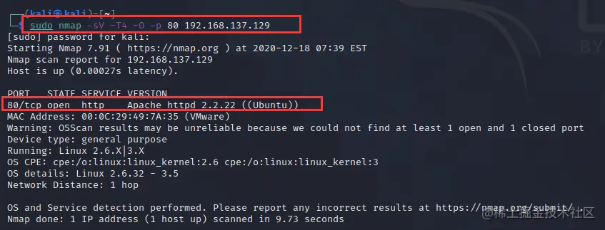 使用 nmap 查看端口服务