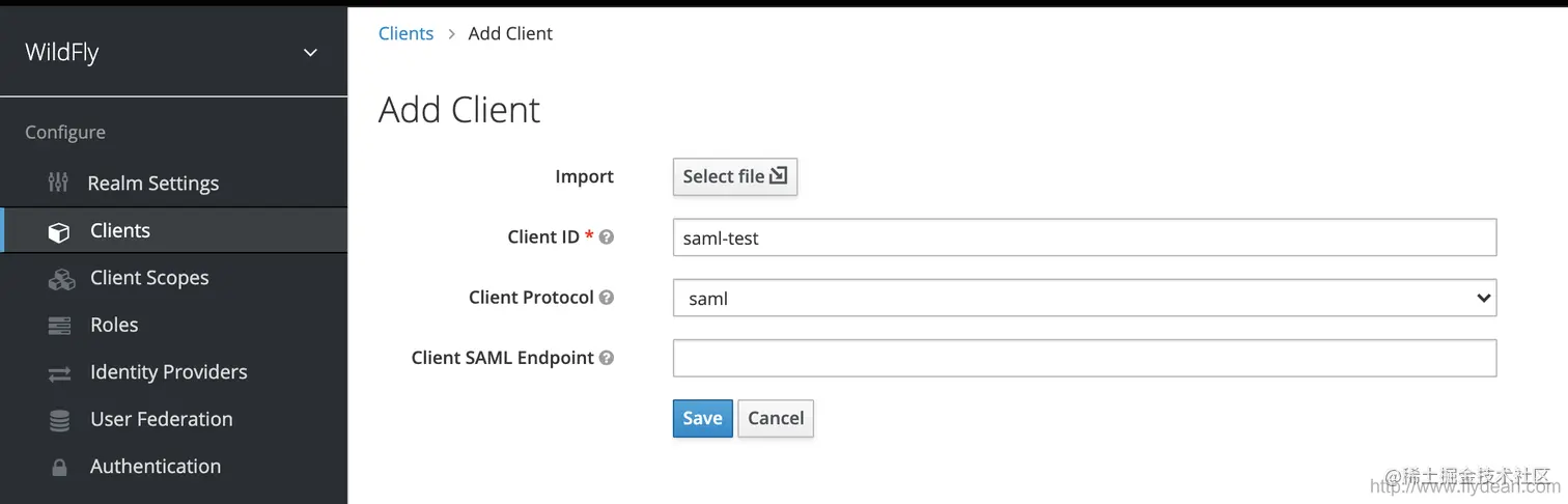 这里需要为SAML应用创建一个新的client。