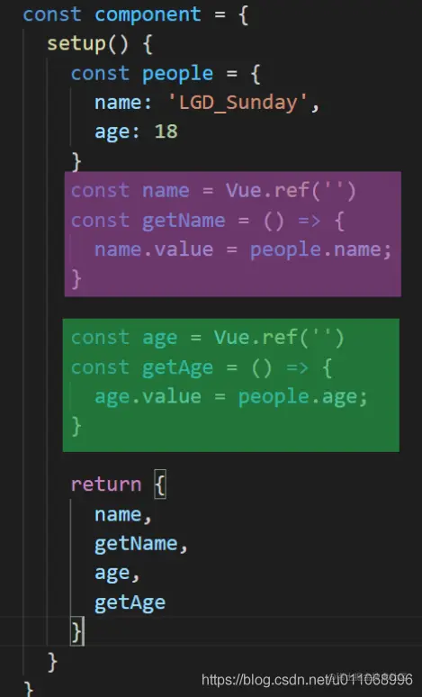 // 目标:两个响应式数据 name 和 age,当我们调用 getName 方法时获取 people 中的name,调用 getAge 方法时获取 people 中的 age