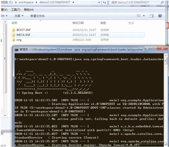 这里注重于的是Start-Class就是我们的Application类。还有一个Main-Class,当一些老项目不能使用jar启动的时候,需要使用包目录下启动的情况,我们就可以这么来启动项目: