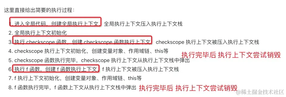 你需要 思考的问题是 ? 结果怎么来的当 f 函数执行的时候,checkscope 函数上下文已经被销毁了(从执行上下文栈中被弹出),怎么还会读取到 checkscope 作用域下的 scope 值呢? -