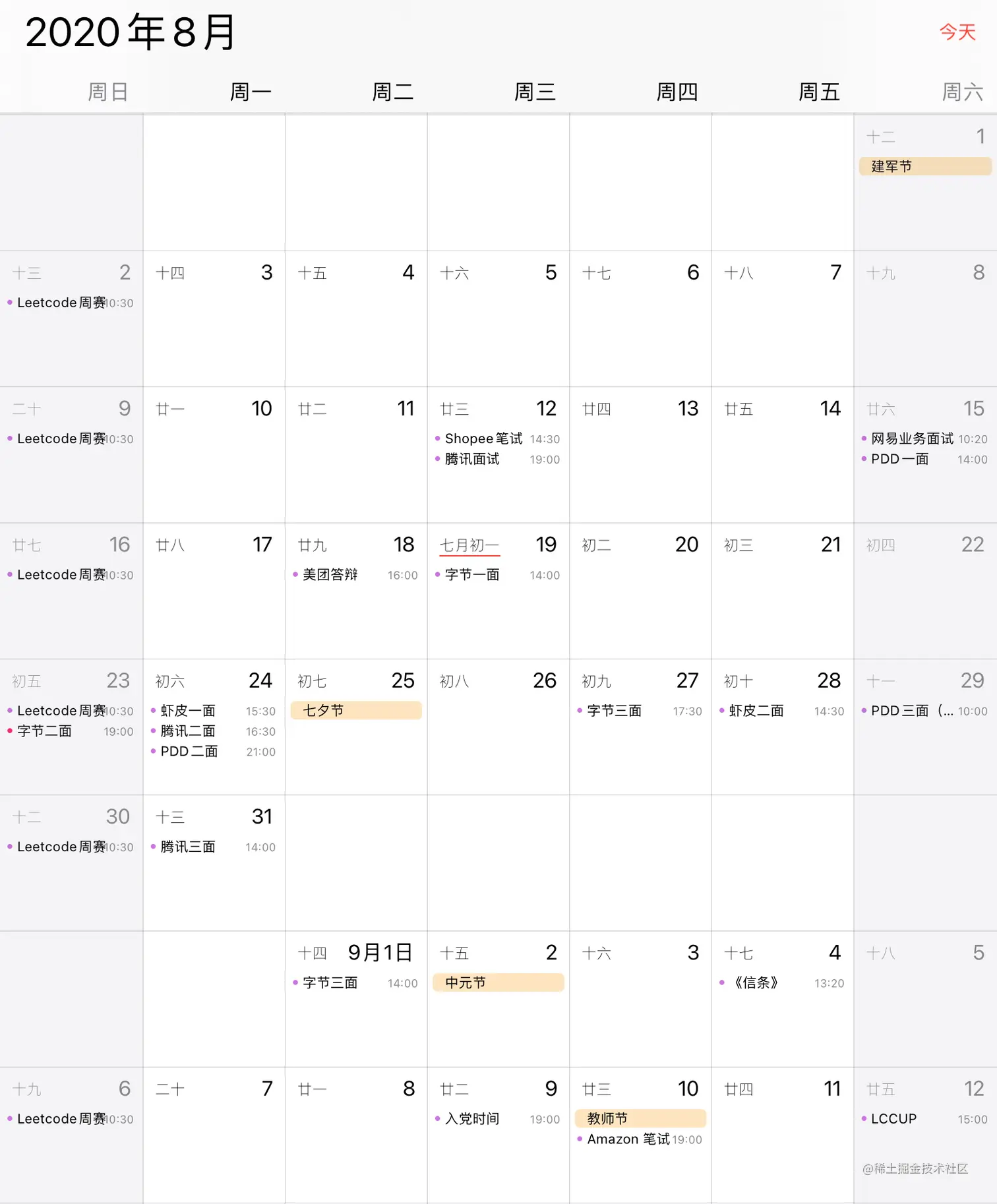 提前批越来越提前,字节的提前批在7月初,三面后在 HR 面挂了,自己的综合表现确实不佳,心态有点崩了,就找同学聊天调整状态,特别感谢我亲爱的朋友们!正式批的节奏也很快,笔试和面试大都集中在8月份,甚至一天能排三场面试,由于一边实习一边秋招比较有压力,我只面了腾讯、字节、网易、Shopee 和拼多多,网易莫名其妙地一面就把我挂了,Shopee 自我感觉良好但是二面挂,拿到字节和腾讯的口头 offer 后,我基本就躺平没有再面试了。