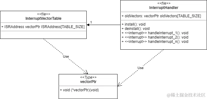 是中断模式里面唯一有具体行为的元素。它能够安装和卸载中断向量的功能。install()函数运行时,拷贝传入的中断句柄到向量表中,使用合适的中断服务程序地址。deinstall()函数相反,用于卸载回复原本的向量表。