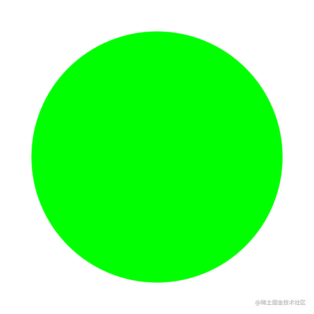 这里是画一个圆心位置在 (500,500),半径为 400 的圆形。需要说明的一点是,这里的坐标轴是以左上角为原点的,水平向右是横轴正方向,竖直向下是纵轴正方向,所以(500,500)正是中心位置。我们可以调整一下参数值来看下效果。