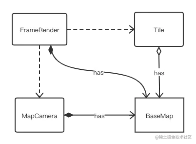 帧渲染类是地图组件的核心部件,当摄像机位置或高度发生变化时或者瓦片加载成功后,地图的可视范围也发生了变化,那么就需要调用帧渲染器重新渲染画布,对可见内容进行更新。