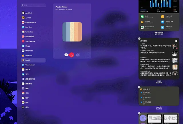 除了上面提到的这些,还有许多 app 提供了 macOS 的小组件:笔记 app《Agenda》可以在通知中心展示近期的笔记列表;去色调色 app《Pastel》能在你的通知中心里放一个色板;思维导图 app《MindNode》可以让你在通知中心快速打开近期工作……