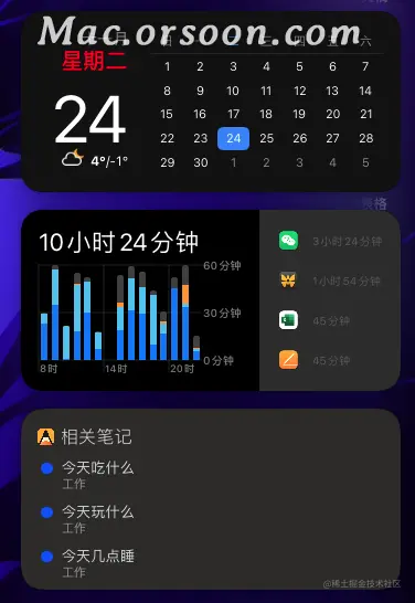 而不能叠放、不能放在桌面、不能搭配壁纸产生反应的 macOS 小组件,更侧重于实用性。