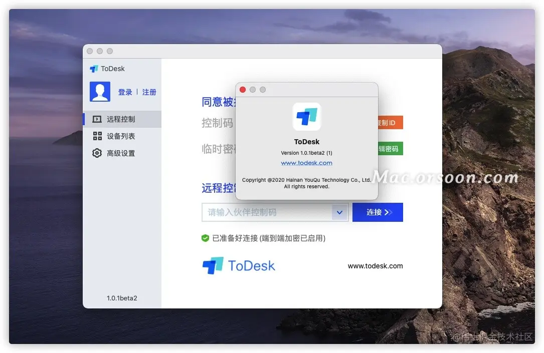 ToDesk Mac中文版是mac上一款优秀的远程控制软件,ToDesk支持 1080P 高清屏幕控制以及文件传输。通过多区域机房、G级宽带服务器加速以确保您每一次的远程访问稳定、流畅,欢迎需要的朋友安装体验!