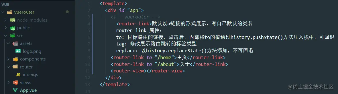 - 通过router-link to="路径"实现跳转