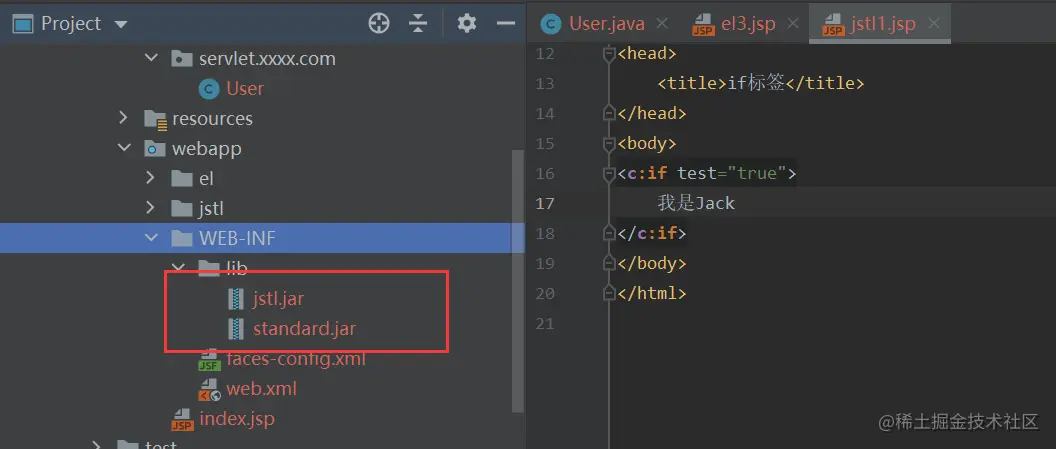 - 下载jakarta-taglibs-standard-1.1.1.zip 包并解压,将jakarta-taglibs-standard-1.1.1/lib/下的两个jar文件:standard.jar和jstl.jar文件拷贝到servlet项目中/WEB-INF/lib/下。