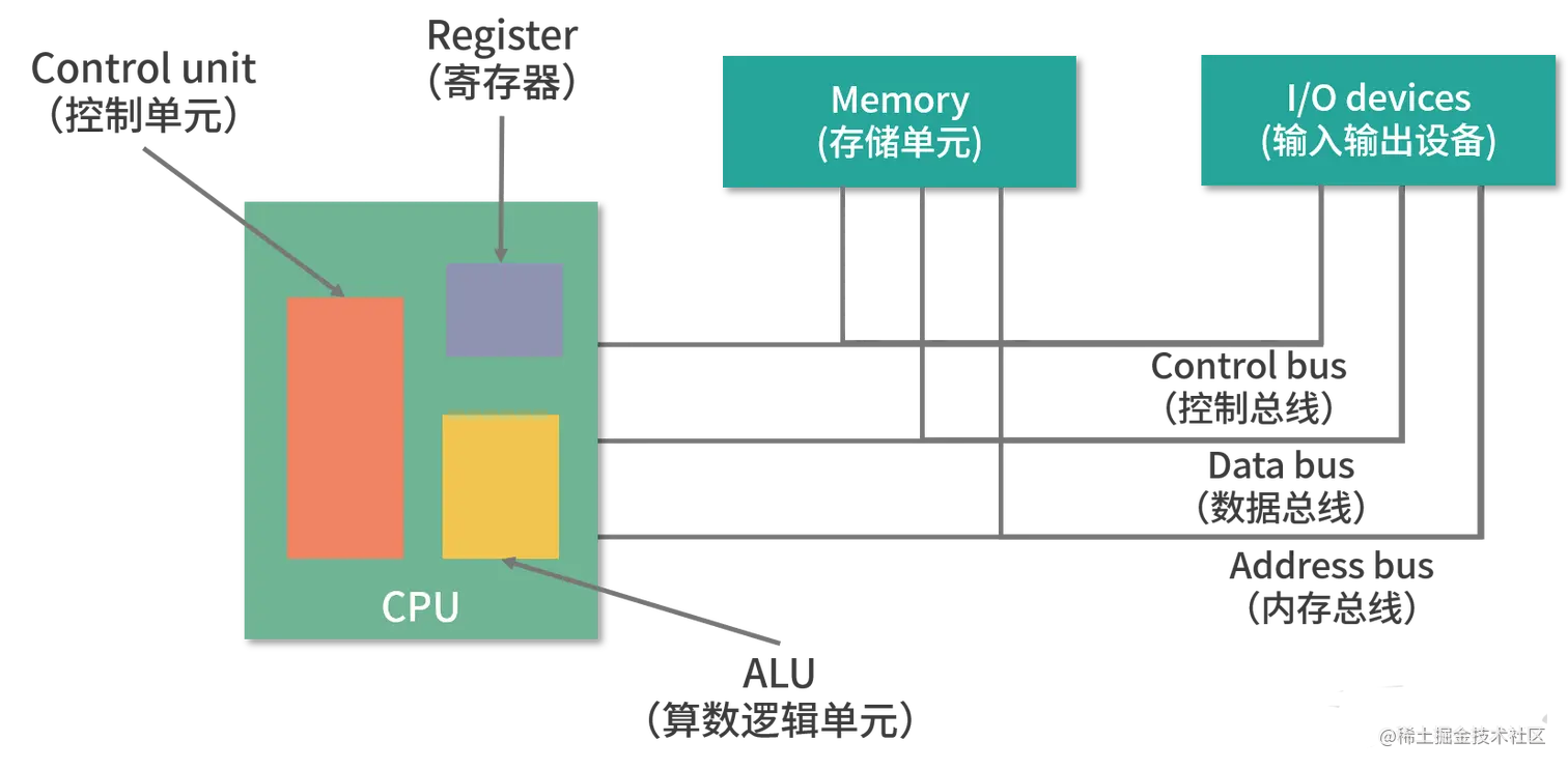 这个模型也被称为冯诺依曼模型,下面我们具体来看看这 5 部分的作用。