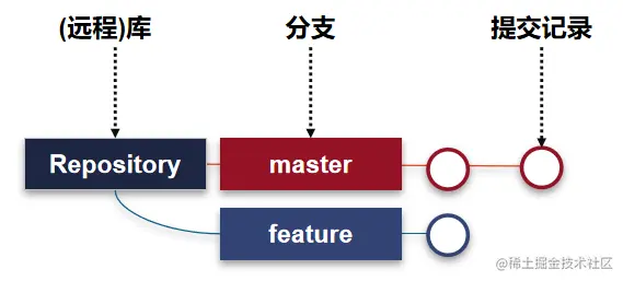 一个 Git 项目的各种环境 ( 比如正式版本,特性开发版本,开发版本 ) 区分都是 "基于分支" 实现的。刚才的 commit 命令更确切的说是 "提交到了本地库的 master 分支" 上。