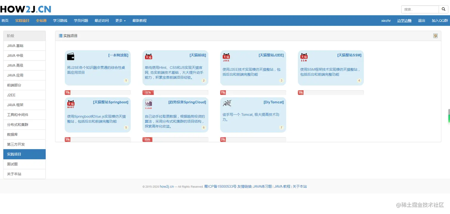 - 一个知识点学完之后还附带了项目实战(但是项目实战部分是要开通会员的,根据自己情况而定)