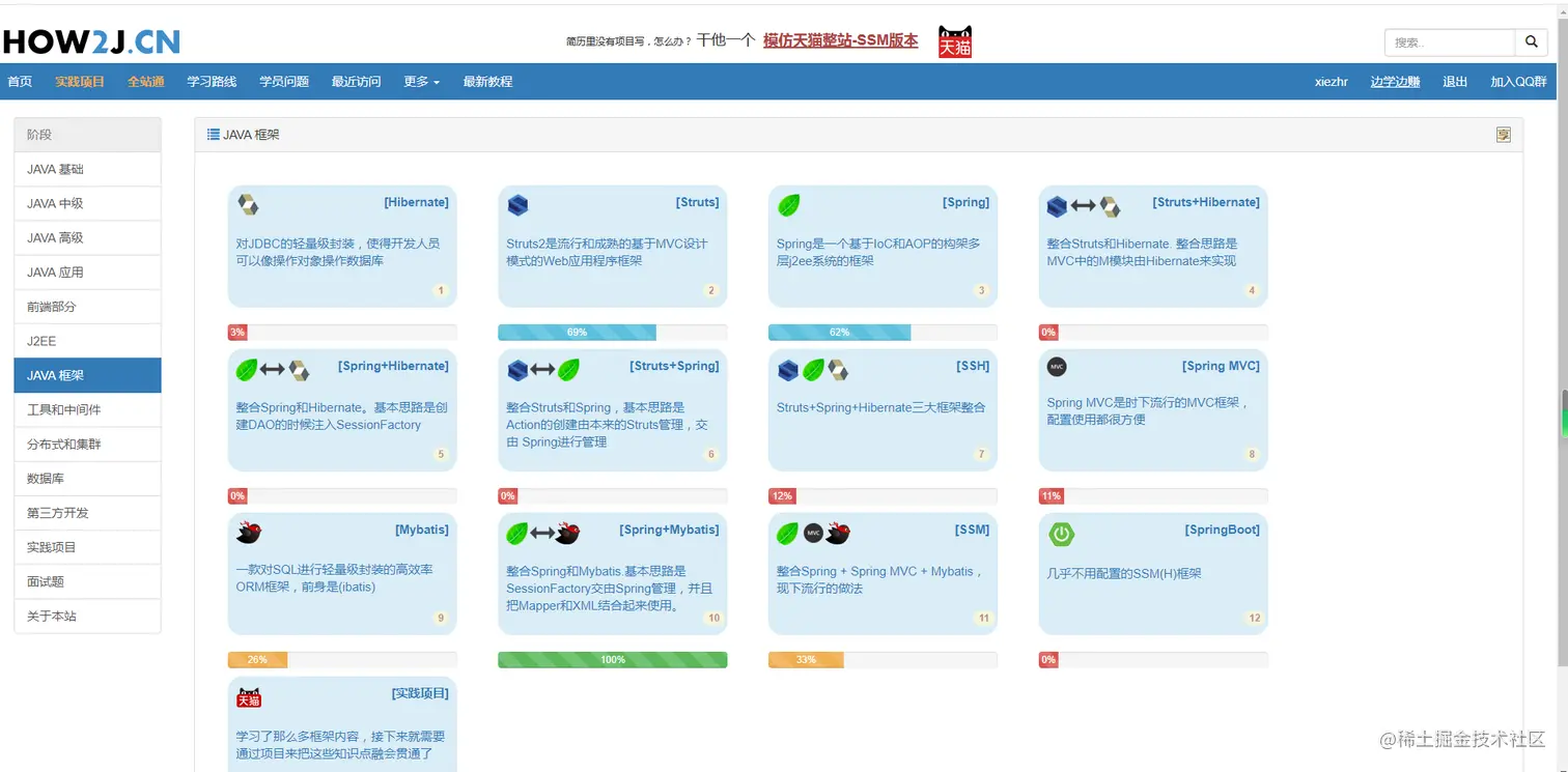- 有站长带着做项目的视频教程(初学者可以跟着学,真的挺好的,比在图书馆看书管用多了),不过项目视频有一部分是要钱的