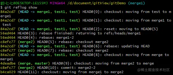 git reflog --date=local | grep merge1根据本地时间查看merge1分支的git操作记录