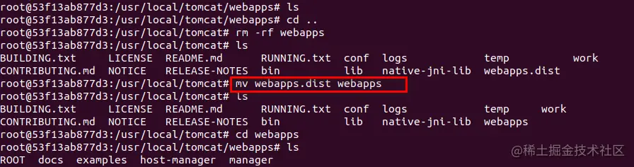 为空则将webapps.dist中的内容移入webapps中,如下图: