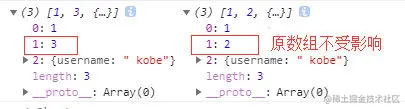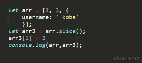 如果该元素是个对象引用(不是实际的对象),slice 会拷贝这个对象引用到新的数组里。两个对象引用都引用了同一个对象。如果被引用的对象发生改变,则新的和原来的数组中的这个元素也会发生改变。