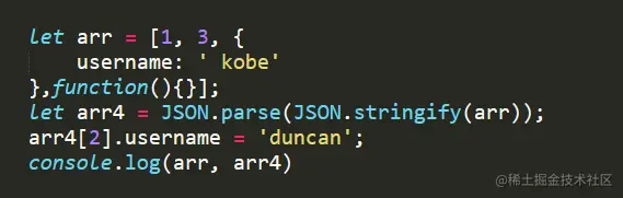 2.这种方法虽然可以实现数组或对象深拷贝,但不能处理函数