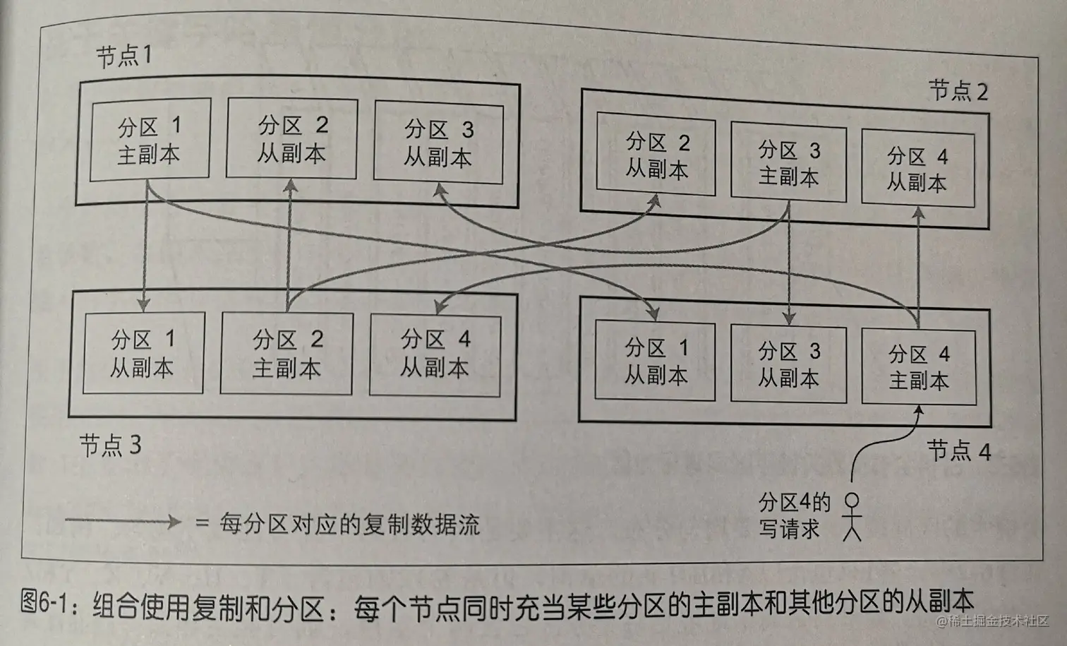 分区通常与复制结合使用,即每个分区在多个节点都存在副本。这意味着某条记录属于某个特定的分区,但同样的内容会保存在不同的节点上以提高系统容错性。