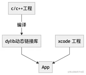 将c/c++工程编译成独立的头文件和动态链接库,然后在xcode中配置动态链接库为启动依赖动态链接库,在业务逻辑中调用。
