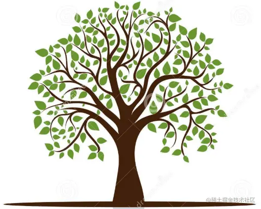 - 树干会发生分叉,形成许多树枝,树枝会继续分化成更小的树枝;