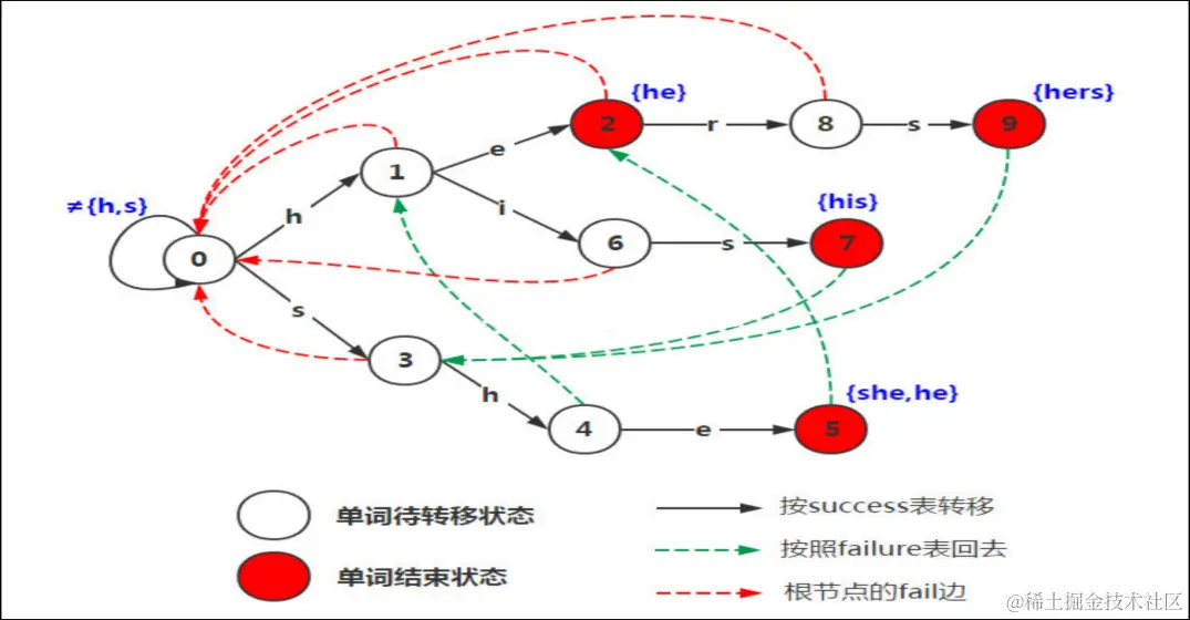 那如何做到高性能呢?这时需要用到Aho–Corasick算法