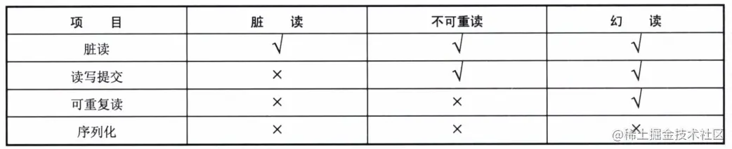 - ISOLATION_READ_UNCOMMITTED。对应Read Uncommited隔离级别,无法避免脏读,不可重复读和幻读。