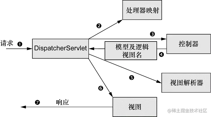 2.处理器映射会根据请求所携带的 URL 信息来进行决策。 一旦选择了合适的控制器, DispatcherServlet 会将请求发送给选中的控制器 。