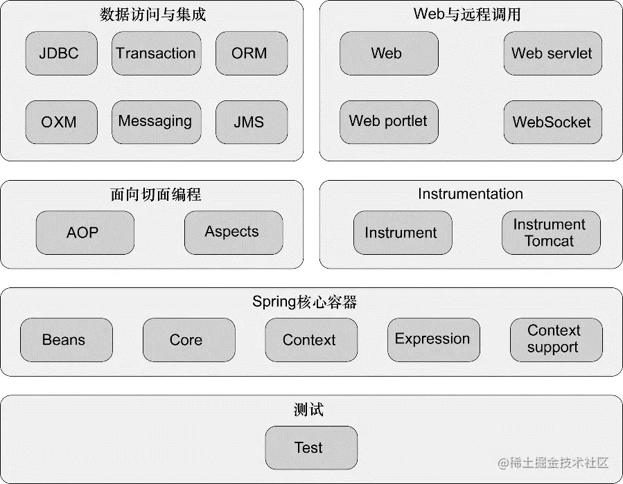 鉴于开发者自测的重要性, Spring 提供了测试模块以致力于 Spring 应用的测试。 通过该模块,你会发现 Spring 为使用 JNDI 、 Servlet 和 Portlet 编写单元测试提供了一系列的 mock 对象实现。对于集成测试,该模块为加载 Spring 应用上下文中的 bean 集合以及与 Spring 上下文中的 bean 进行交互提供了支持。