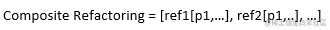 既然上层重构操作都可以转化为最底层的原子重构操作,那如何表达这种转化呢?表格中列举了几种常见的重构原子操作,每种重构原子操作都可以用一个函数来表达。例如Move Method,函数名为Move Method,我们用三个参数来明确它的行为:Source(所属类型)、Target(目标类型)以及(需要移动的方法),有了这些信息就可以明确一次Move Method原子重构。对于任何一个复杂的重构来说,都可以表示成如下形式的原子重构序列,即一系列原子重构的组合。