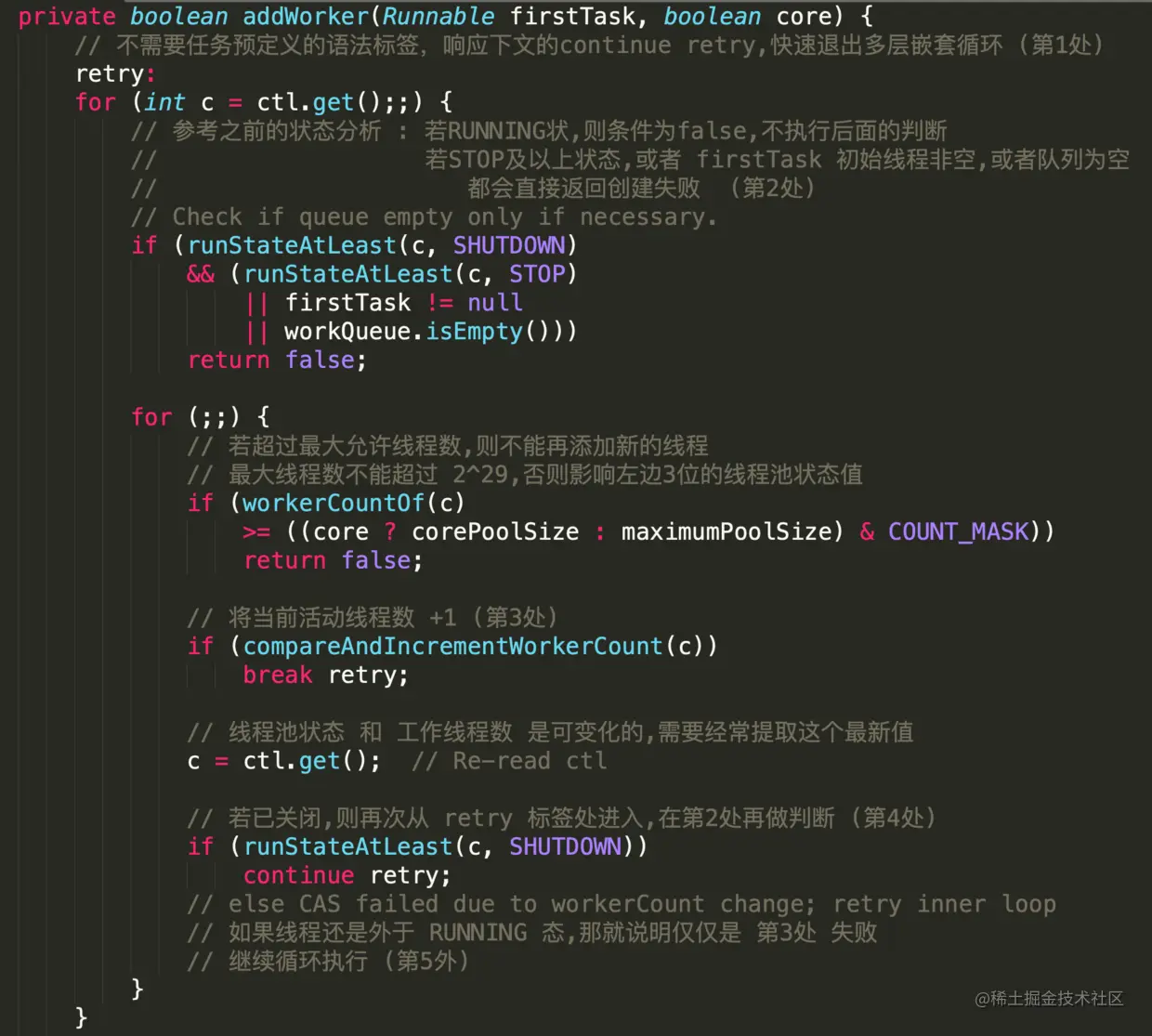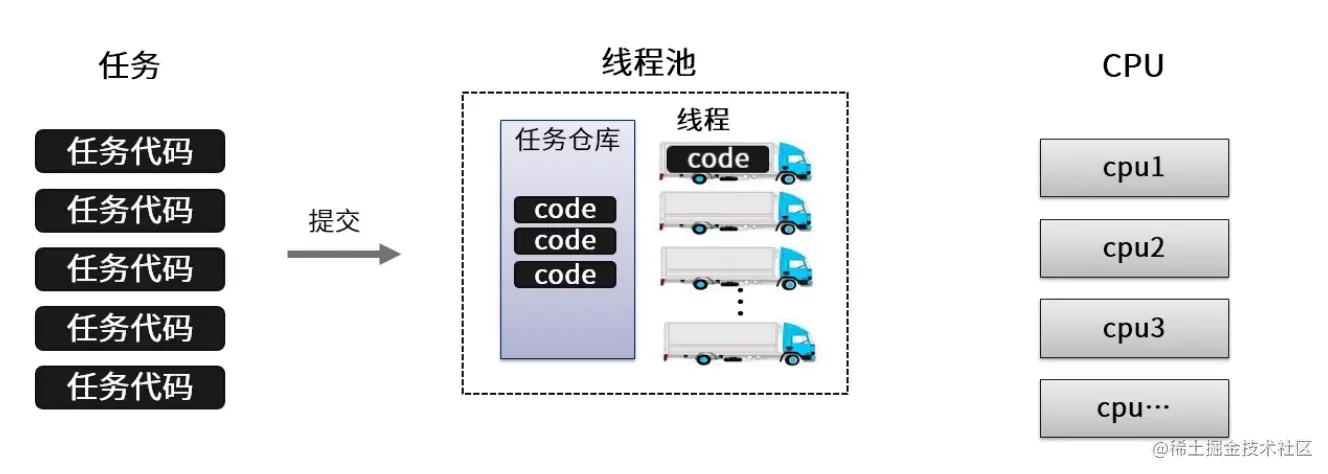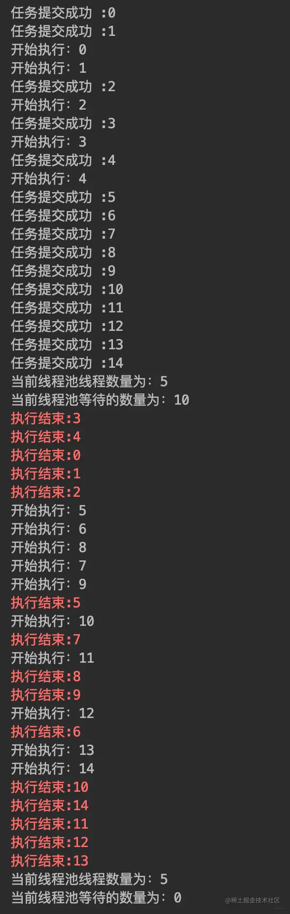 - 如果当前线程数已经达到 corePoolSize,那么将提交的任务添加到队列中,等待线程池中的线程去队列中取任务;