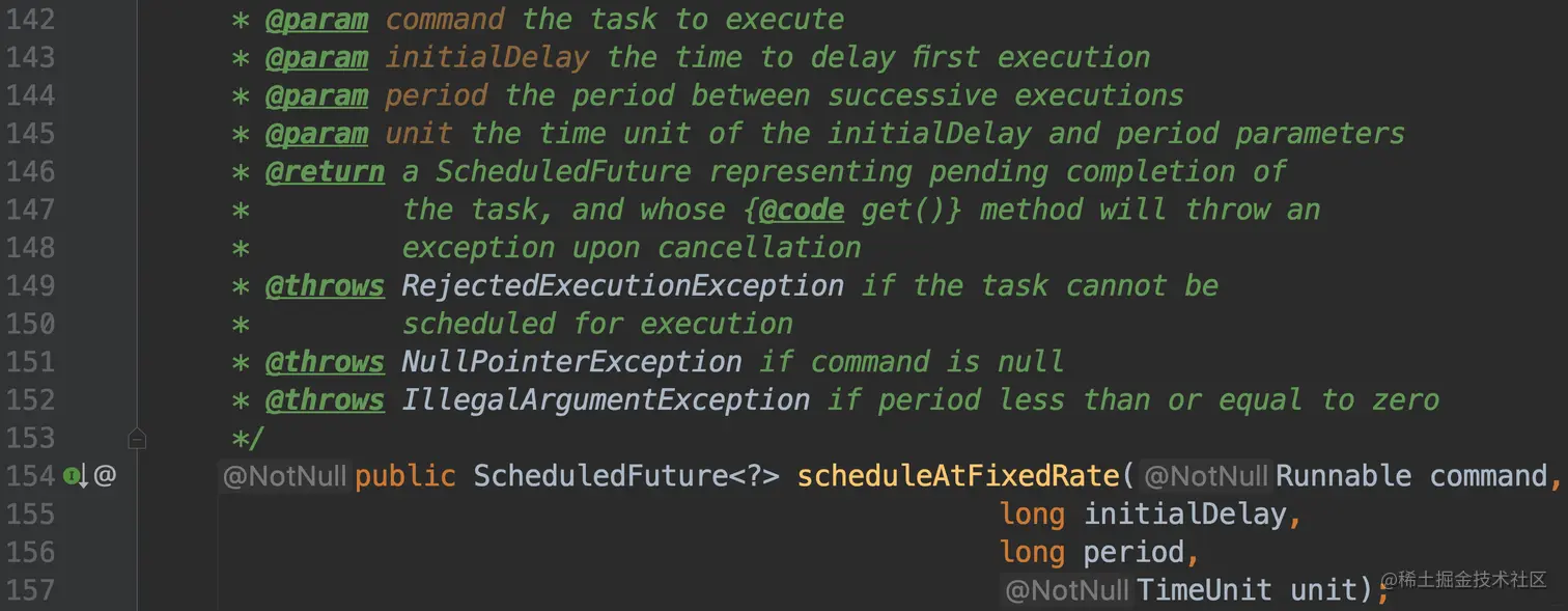 一次任务 执行时长超过了周期时间,下一次任务会等到该次任务执行结束后,立刻执行,这也是它和scheduleWithFixedDelay的重要区别