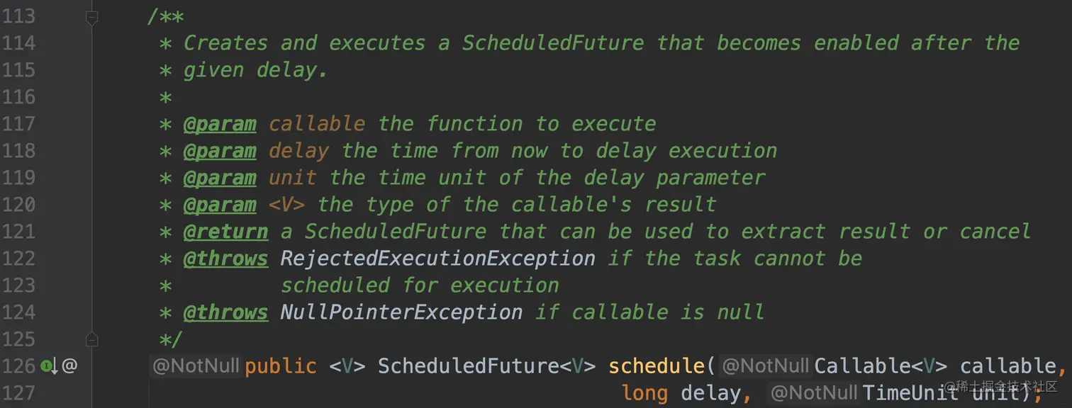 public ScheduledFuture schedule(Callable callable, long delay, TimeUnit unit);