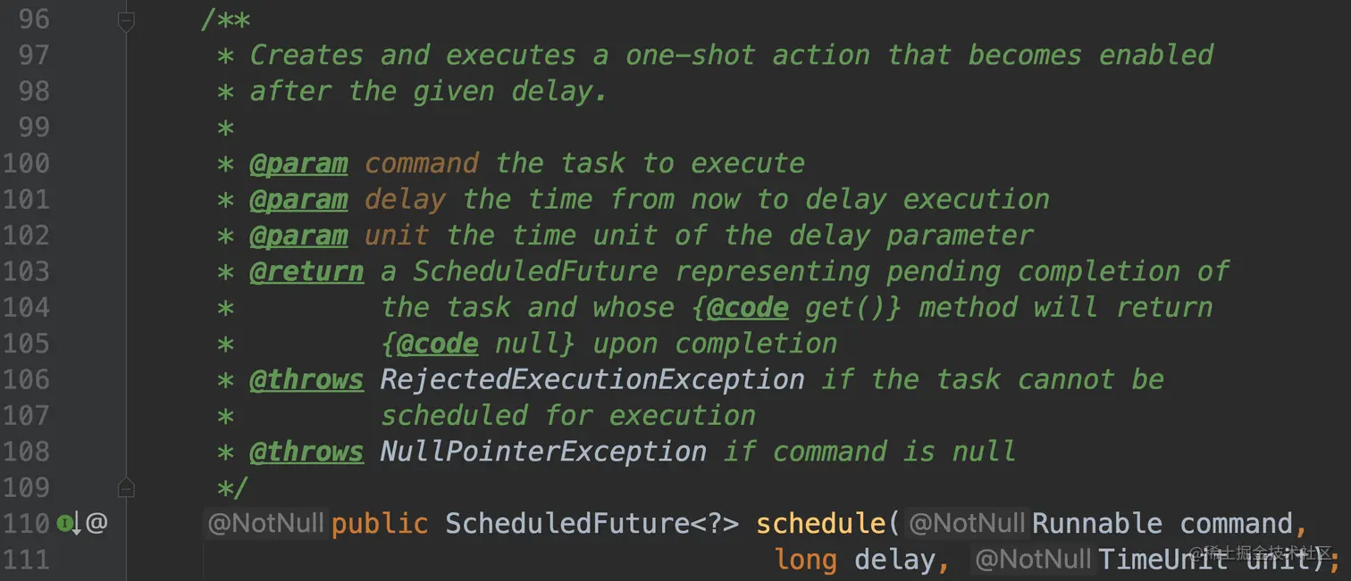 - 固定调度线程池:newScheduledThreadPool(n)创建,五个参数分别是 (n, Integer.MAX_VALUE, 0, NANOSECONDS, new DelayedWorkQueue())。含义是池中保持n个线程,多余的任务在DelayedWorkQueue中等待。
